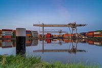 Container Terminal Alpherium tijdens het blauwe uurtje.