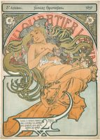 Alfons Maria Mucha (24 juli 1860-14 juli 1939), internationaal bekend als Alphonse Mucha, was een Tsjechische schilder, illustrator en graficus, woonachtig in Parijs tijdens de Art Nouveau-periode, vooral bekend om zijn duidelijk gestileerde en decoratieve theatrale posters. Hij produceerde illustraties, advertenties, decoratieve panelen en ontwerpen, die tot de bekendste afbeeldingen van die periode werden. De kunstenaar studeerde aan de Academie voor Schone Kunsten in München. In het tweede deel van zijn carrière, op 43-jarige leeftijd, keerde hij terug naar zijn thuisland Bohemen-Moravië in Oostenrijk.