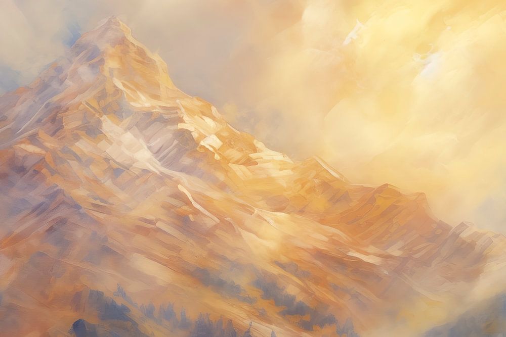 Dit werk uit de serie Faded Dreams toont een berglandschap in de Alpen. Het kleurenpalet van het kunstwerk is ingetogen maar levendig en geeft een dromerige vintage uitstraling aan uw interieur!