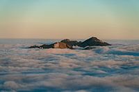 de Allgäuer bergen Alpspitz, Edelsberg en Reutter Wanne bij inversieweer en zonsondergang