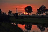 Een poldergemaaltje nabij Middelie in het avondzonnetje gevat