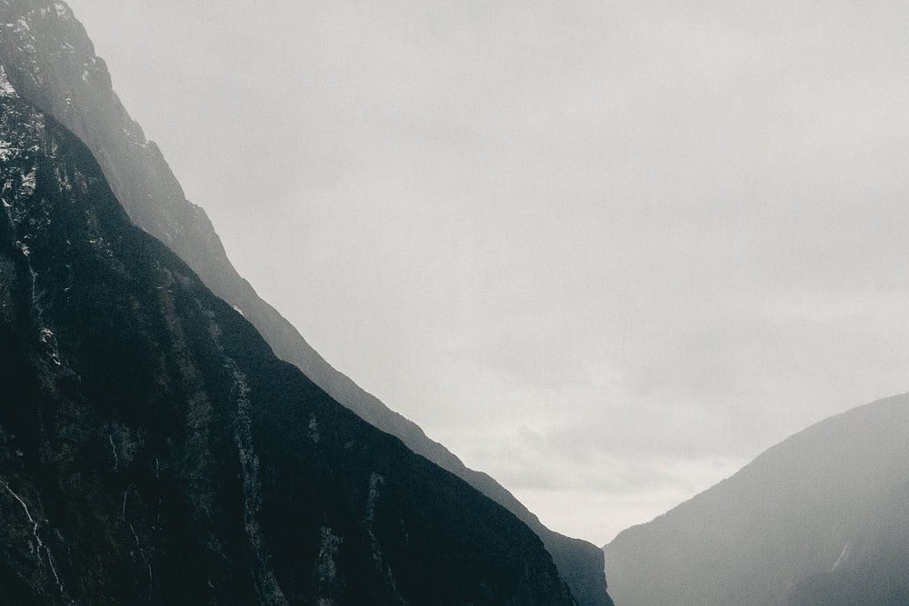 Milford Sounds kent vele gezichten, maar als de storm in volle gang is levert dit de meest mystieke en onheilspellende foto's op: grijze luchten, donkere bergen, en diepe wateren