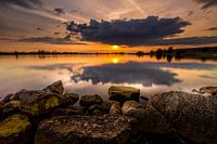 Een half uur voordat de zon achter de horizon verdwijnt bij de natuurgebied de blauwe kamer. Een fantastisch schouwspel tussen de bewolking en de ondergaande zon.