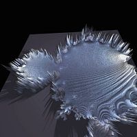 Dit landschap van ijspegels (of zijn het bergtoppen?) is ontstaan uit een foto van de blauwe hemel en de zon.