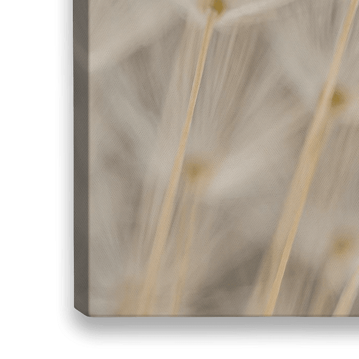 Bij het maken van deze foto heb ik gekozen voor een geringe scherptediepte, Hierdoor krijg je een dromerige sfeer omdat er enkel een klein deel (de scherpte ligt bij het middelste pluisje, waar het steeltje overgaat in de pluishaartjes). Er ontstaat een eenvoudig minimalistisch beeld wat rust uitstraalt. Dit tafereeltje van de pluisjes is slechts een paar centimeter groot in werkelijkheid!