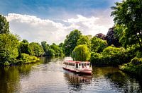 Alster stoomboot op de rivier de Alster met bomen in Hamburg