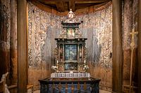 Altaar in de houten staafkerk van Heddal, Noorwegen.