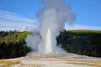 De Old Faithful Geyser in Yellowstone National Park is de meest betrouwbare geiser van allemaal. Hij barst vele malen per dag uit, met tussenpozen van 60 tot 90 minuten. Zittend op een van de vele bankjes eromheen wachtten we geduldig en genoten van het schouwspel.