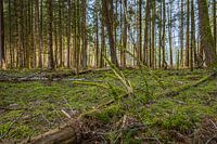 Een dicht tapijt van weelderig groen mos bedekt de bodem van het bos en nestelt zich tegen de muf ruikende stammen, terwijl het zachte zonlicht door de hoge naaldbomen breekt en een vredige stilte teweegbrengt. Overal getuigen takken op de grond en verspreide dennenappels van de natuurlijke levenscyclus, die in dit ongerepte bos zijn…