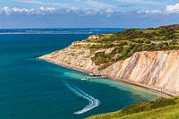 De kliffen bij Alum Bay, niet ver van The Needles, op het Isle of Wight in Engeland, Groot-Brittannië