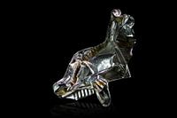 Aluminium folie lade van kant-en-klaar voedsel getoond als een kunst sculptuur tegen een zwarte achtergrond, vermijdbare afval van wegwerpverpakkingen gebruik middelen en energie, schadelijk voor milieu en klimaat, kopieer ruimte