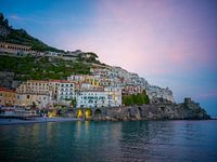 Koop dit landschapskunstwerk Amalfi in de avond van t.ART op canvas, aluminium dibond, (ingelijste) fotoprint, behang en ArtFrame, op maat geprint in Fine-Art kwaliteit.