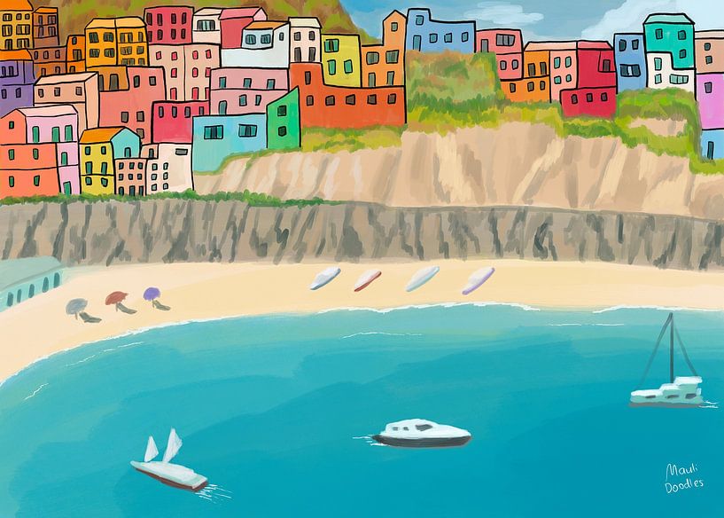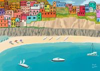 Ik heb het gemaakt omdat ik de kleur van de huizen mooi vind. Ik heb het geschilderd in een semi-realistische en naïeve stijl.