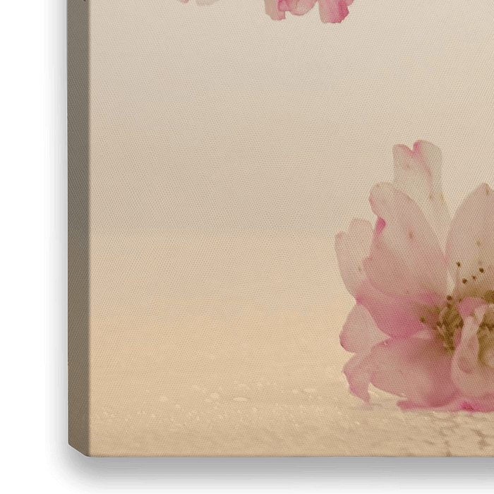 Roze pastel tinten onderstrepen dit warme beeld van amandel bloemen en spa stenen