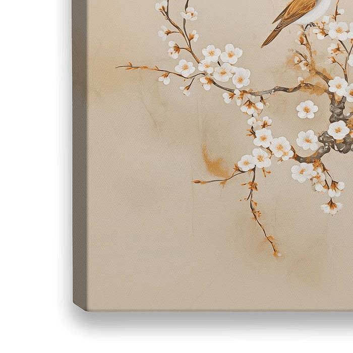 Amandel Bloesem met vogeltjes in de stijl van Vincent van Gogh, zelfde sfeer maar dan net even anders. In zachte aarde tinten. Warm en een beetje Japandi en Retro