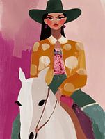 Amazone, kleurrijk portret. Past perfect in een hip, modern en eclectisch interieur. Kies zelf het formaat en materiaal bij dit werk en maak het helemaal naar wens.