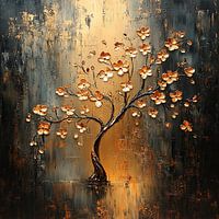 Details: abstract, modern, bloemenschilderij, bloemen, boom, natuur, kunst, decoratie, aardetinten, zwart
