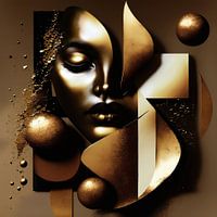Abstract close-up portret van een vrouw in een gouden collage stijl met als thema ambitie.