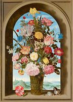 Dit schilderij met een bont boeket van dertig soorten bloemen is een topstuk van Ambrosius Bosschaert. Hij bracht de bloemen nauwkeurig in beeld, zodat ze stuk voor stuk goed te herkennen zijn. Daarmee biedt dit schilderij een overzicht van de mooiste bloemen die Bosschaert kende, waaronder de tulp die destijds in Holland nog zeldzaam was.