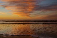 Zonsondergang op Ameland. Je ziet de weerkaatsing van de lucht in het water / zand. In het water zie je ook nog een een prachtig lijnenspel.