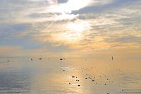 Bladstille zonsondergang van afgelopen oktober op de plaat gezet bij de veerhaven in Nes (Ameland).De Waddenzee is het grootste waddengebied ter wereld. Deze ondiepe zee bestaat uit bodemzand dat door zeestromen opwervelt uit de Noordzee. Doordat een wad twee maal per etmaal door het getij overstroomd wordt, neemt de stroming slik mee. Bij hoogwater bezinkt dat op rustige plekken.