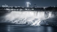 Een Zwart-Wit foto van de American Falls, de op een na grootste van de drie watervallen die samen bekend staan als Niagara Falls aan de Niagara-rivier langs de Canada – U.S. grens.