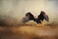 Vliegende Amerikaanse arend met een stormachtig geschild landschap. Digitale fotomanipulatie; fotografie gecombineerd met digitale schilder technieken