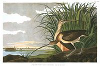 John James Audubon werd geboren op 26 april 1785 in Les Cayes, Santo Domingo, Frankrijk (nu Haïti). Van het landgoed van zijn vader in Pennsylvania maakte Audubon de eerste Amerikaanse experimenten met vogelbanden. Hij begon alle ornithologische dingen te verzamelen en potlood- en pasteltekeningen van vogels te maken. Toen zijn zelfvertrouwen als kunstenaar groeide, waagde hij zich aan aquarellen, het medium dat hij het vaakst zou gebruiken. Audubon werd een reizende kunstenaar, die af en toe leerlingen lesgeeft, maar altijd lokale vogels en hun natuurlijke habitat schildert. Zijn belangrijkste werk, een kleurenplaatboek getiteld The Birds of America (1827-1839), wordt beschouwd als een van de beste ornithologische werken ooit voltooid. Audubon stierf op 27 januari 1851 in New York City. Noot: Dit werk is ook zonder begeleidende tekst in de illustratie te verkrijgen. Neem hiervoor contact met ons op.