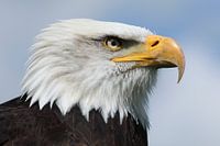 Een portret van een Amerikaanse Zeearend tegen een blauwe lucht. Dit zijn imponerende roofvogels welke respect verdienen. Deze vogel is tevens de nationale vogel van de Verenigde Staten.