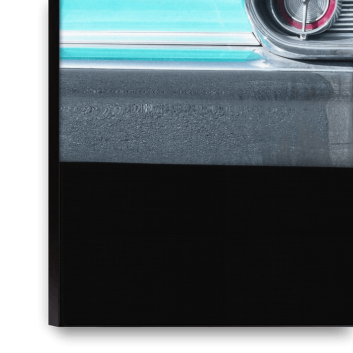 De foto nodigt uit tot een duik in de wereld van de jaren zestig. Een tijd waarin Amerikaanse wegkruisers met oversized staartvinnen de straten veroverden.