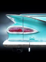 De foto nodigt je uit om je onder te dompelen in de wereld van de jaren vijftig. Een tijd waarin Amerikaanse voertuigen met oversized staartvinnen de wegen veroverden.
