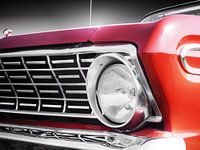De foto toont de voorkant van een fantastische Amerikaanse klassieker uit 1964, waarbij de nadruk ligt op enkele details van deze spectaculaire auto.