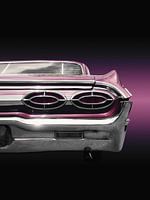 De foto nodigt uit tot een duik in de wereld van de jaren zestig. Een tijd waarin Amerikaanse wegkruisers met oversized staartvinnen de straten veroverden.