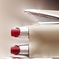 Het toont u de achterkant van een indrukwekkende Amerikaanse klassieker uit 1959. De nadruk ligt op enkele details van deze spectaculaire auto.