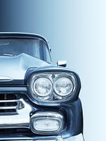 De foto nodigt uit om in de wereld van de jaren 1950 te duiken. Het toont u de voorkant van een Amerikaanse pick-up uit 1958, met de nadruk op enkele details van deze spectaculaire klassieke auto.