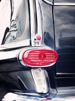 De focus ligt op enkele details van deze spectaculaire stationwagon. De nadruk ligt op het samenspel van lijnen, kleuren en oppervlakken.
