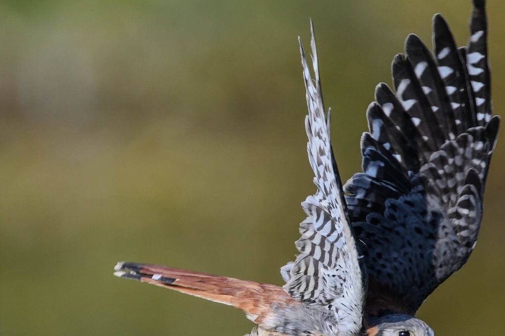Grootte**: De Amerikaanse torenvalk is ongeveer 28 tot 35 cm groot, met een spanwijdte van ongeveer 65 tot 75 cm.
