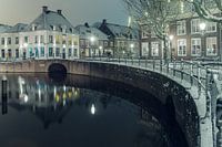 Het Zand, Amersfoort tijdens een besneeuwde winter avond aan een van de kanalen. 'Anton Piek' sfeer.
