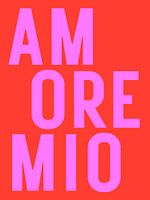 Typografisch motief met een Italiaanse uitnodiging in felroze en rood voor geliefden.