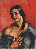 Amrita Sher-gil, Zelfportret met rode achtergrond, ca. 1930 van Atelier Liesjes