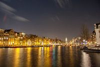 Amstel richting Halvemaansbrug in Amsterdam in de avond gefotografeerd.