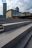 Dit werk toont het Amstelstation in Amsterdam, gezien van de statige trappen die dwars op het gebouw zijn gesitueerd. Op de achtergrond twee van de vele wolkenkrabbers die in de buurt zijn verrezen.