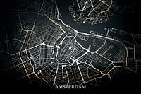Amsterdam - Abstracte Plattegrond in Zwart Geel Goud