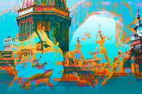 Dit werk is een compilatie van Amsterdamse 'monumenten', te weten Rembrandt van Rijn, De Sint Nicolaas basiliek en Herman Brood. Het werk is in diverse kleurvarianten te bestellen. Dit moderne werk past in iedere huiskamer, hal, kantoorruimte en wachtkamer.