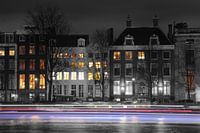 De Amsterdamse grachten. Zwart wit fotografie met kleur contrast.