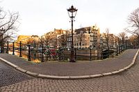Amsterdam, de Herengracht in het eerste licht tijdens de zonsopkomst. De daken van de grachtenpanden in een gouden licht. Het is vroeg, het is zondag, het is tijdens de lockdown van 2021.... een verstilde stad zonder toeristen, rondvaartboten, rolkoffers. Alleen de stad Amsterdam in totale rust.... Stiekem heb ik genoten in de stille stad!