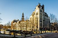 Kruising van de Keizersgracht en de Leliegracht. Genomen op een winterse middag in het centrum van Amsterdam. de Grachtengordel