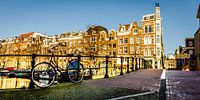 Kruising van de Keizersgracht met de Nieuw Spiegelstraat. Impressie van de gebouwen met op de voorgrond een fiets. een karakterestiek plaatje van het centrum van Amsterdam