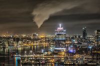 Uitzicht over Het IJ richting noord/west met de centrale in de verte en de Amsterdam Outlook in Amsterdam Noord.