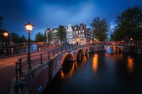 Bekende Prinsengracht Amsterdam in de avond tijdens het blauwe uurtje.
